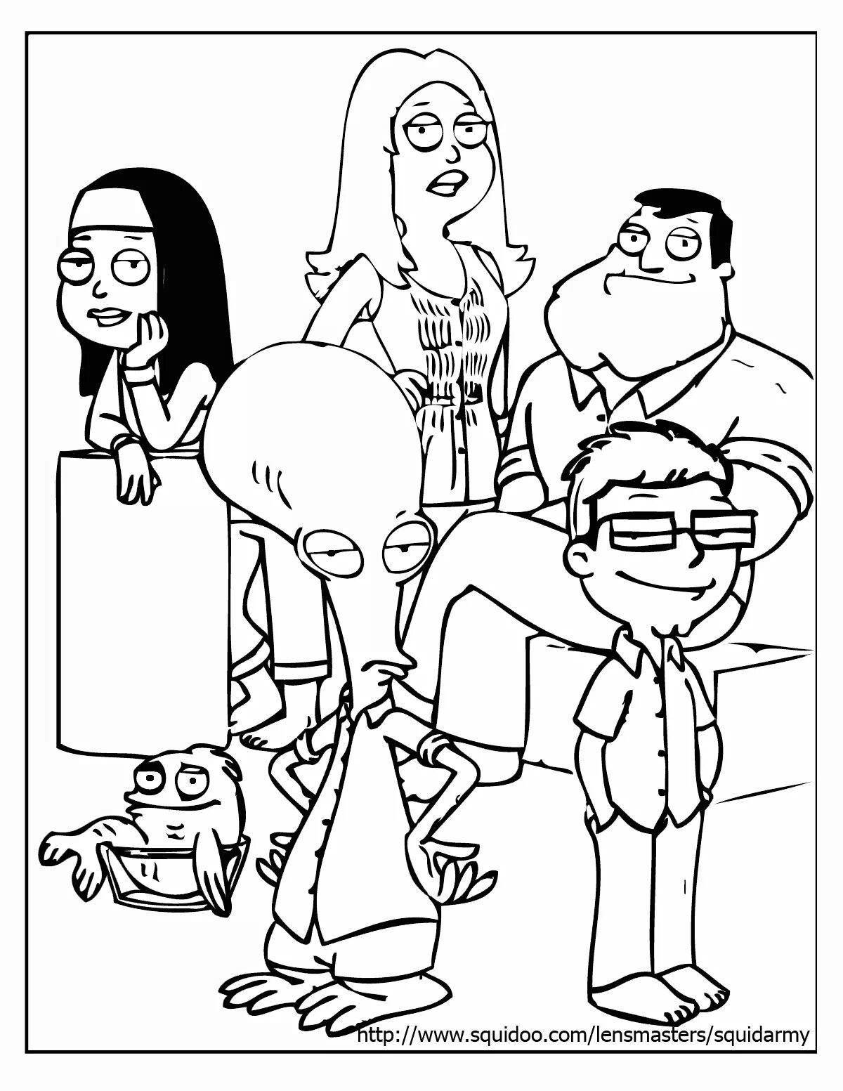 Раскраска Американский папаша представляет собой отличную возможность погрузиться в мир популярного мультсериала и проявить свою креативность. Вы можете скачать и распечатать коллекцию увлекательных раскрасок с персонажами Штанов, Стэнли и остальной неординарной семьи. Независимо от возраста, вы обязательно найдете подходящий рисунок для себя - будь то простая раскраска для детей или сложный трафарет для взрослых поклонников мультсериала.