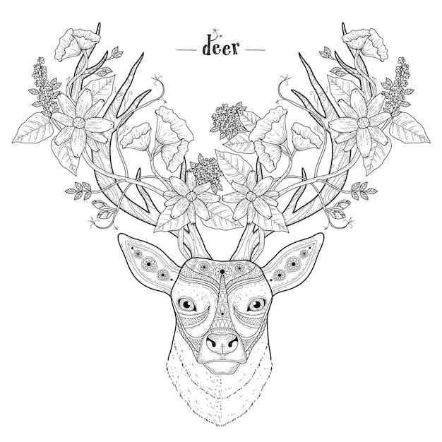 Раскраска Голова Оленя