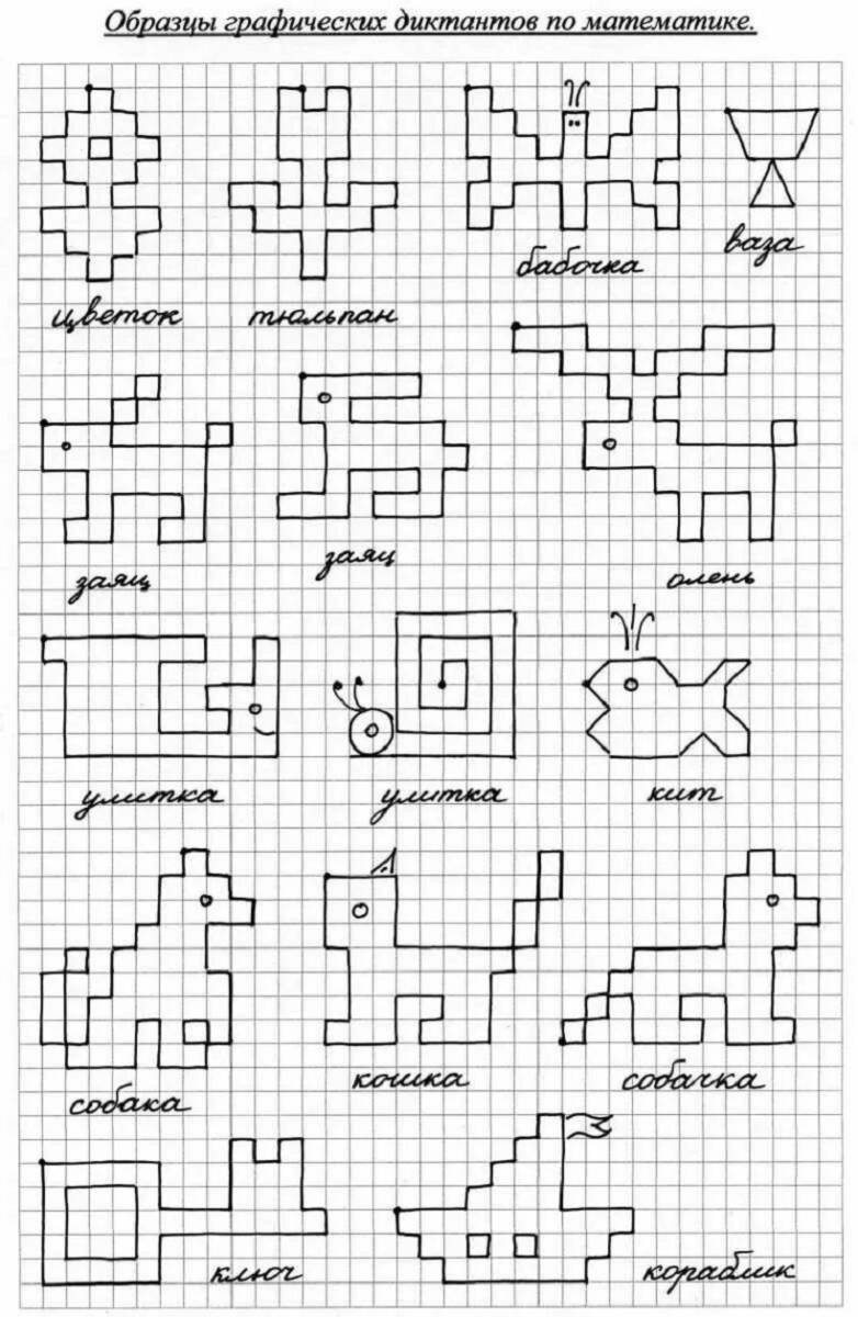 Раскраска Графический диктант по клеточкам - это увлекательное занятие как для детей, так и для взрослых. Вам предлагается скачать и распечатать несколько уникальных раскрасок, где вы будете оживлять изображения, следуя по клеточкам. Эта деятельность поможет развить воображение и внимание, а также принесет массу удовольствия и расслабления.