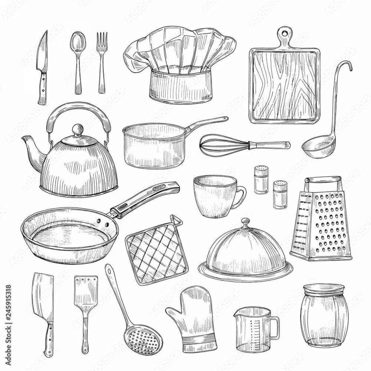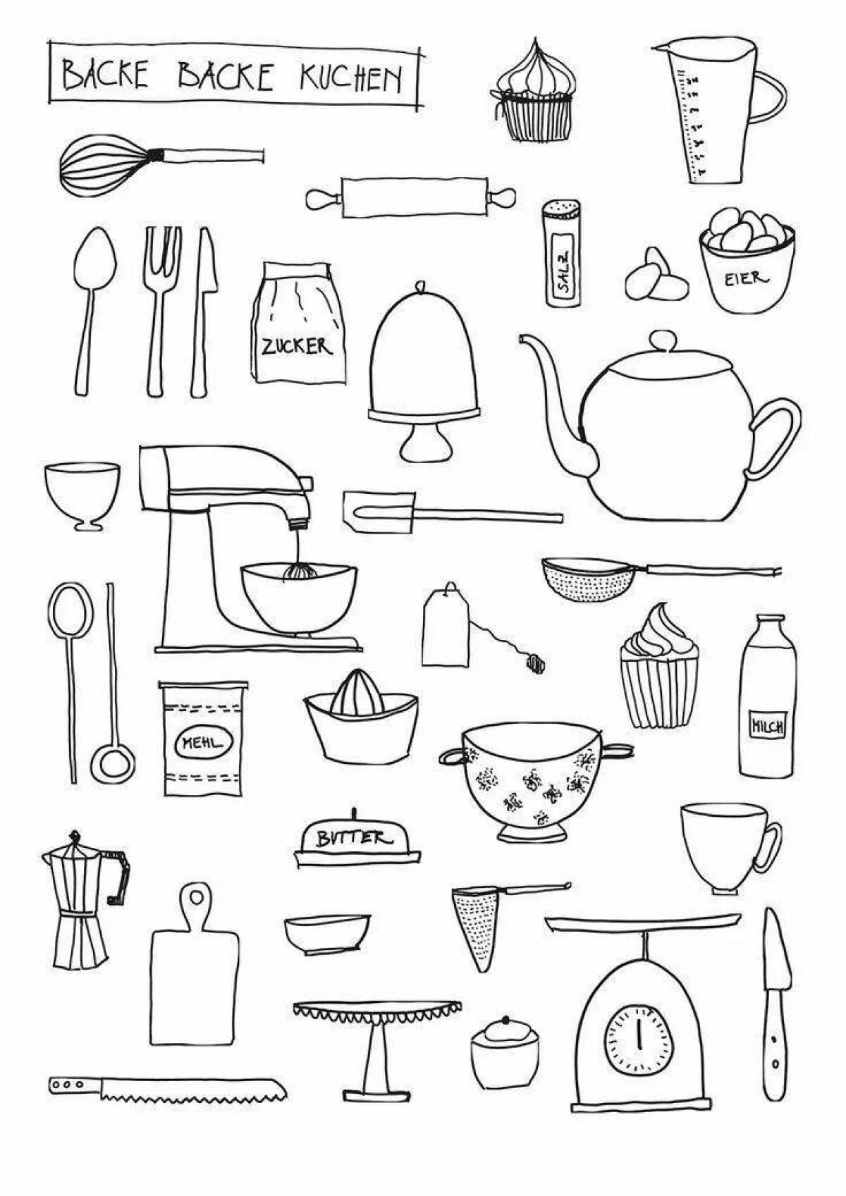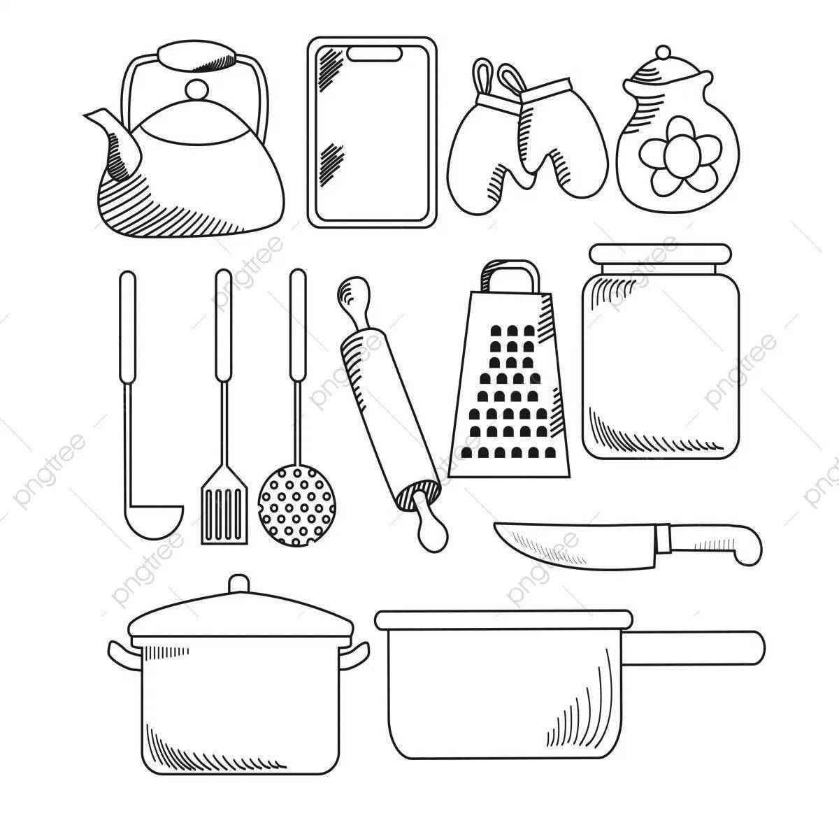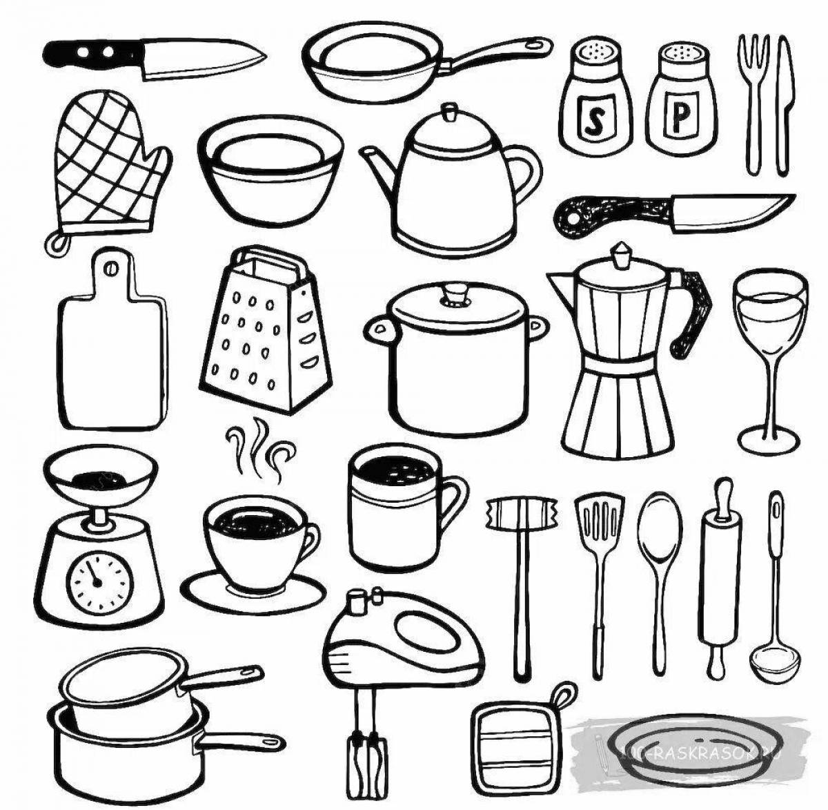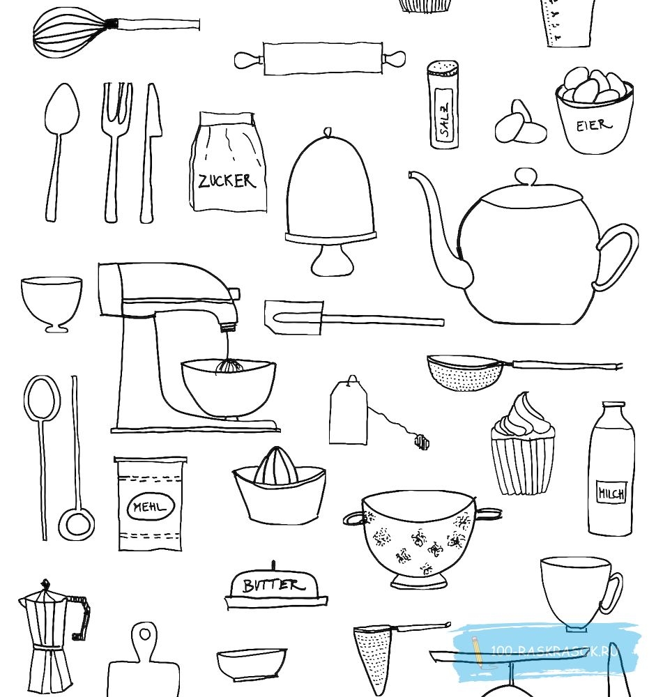 Раскраска Кухонные принадлежности