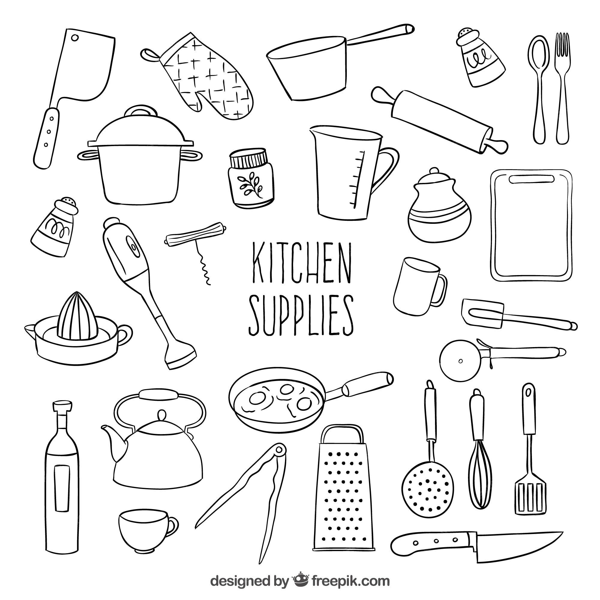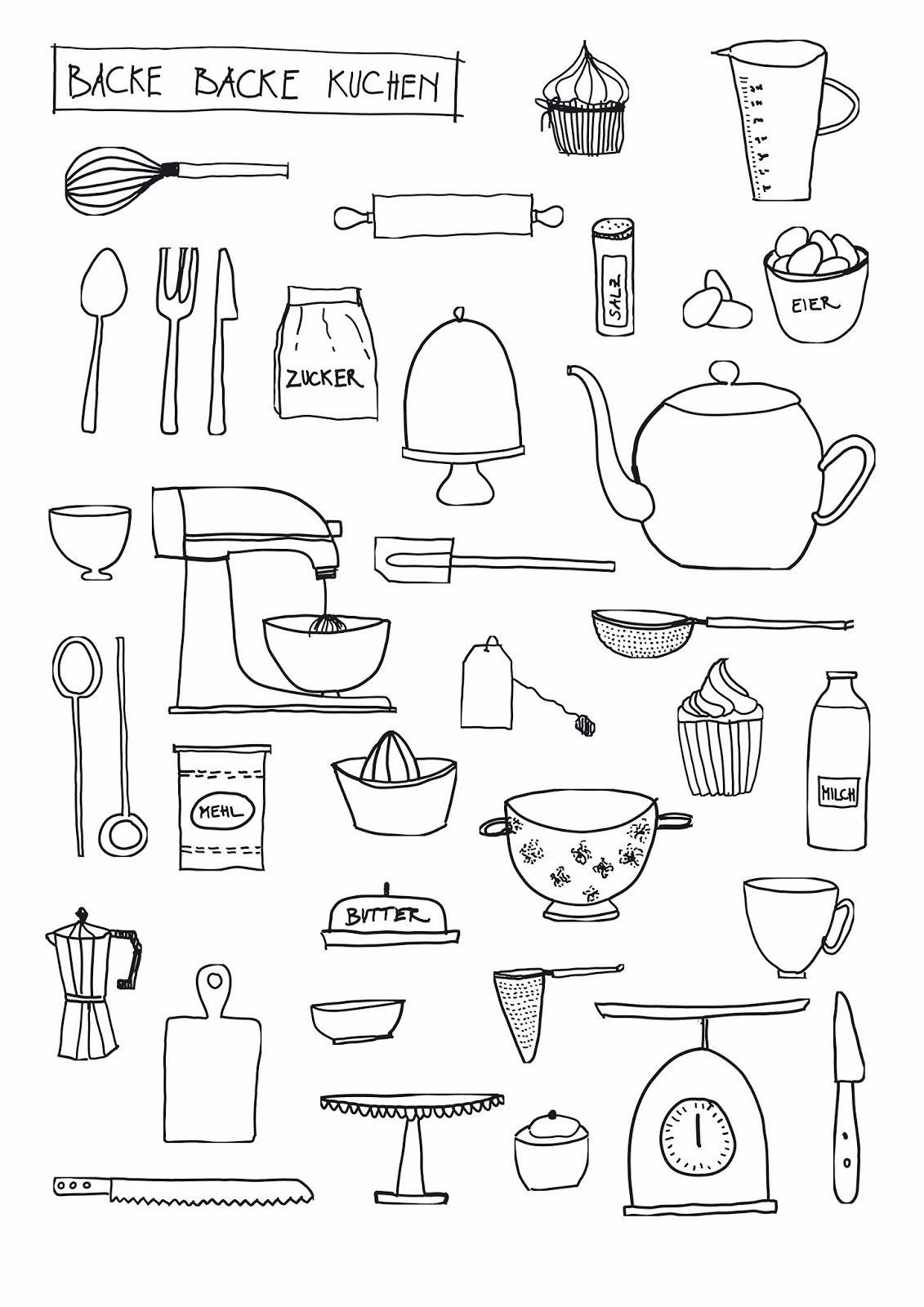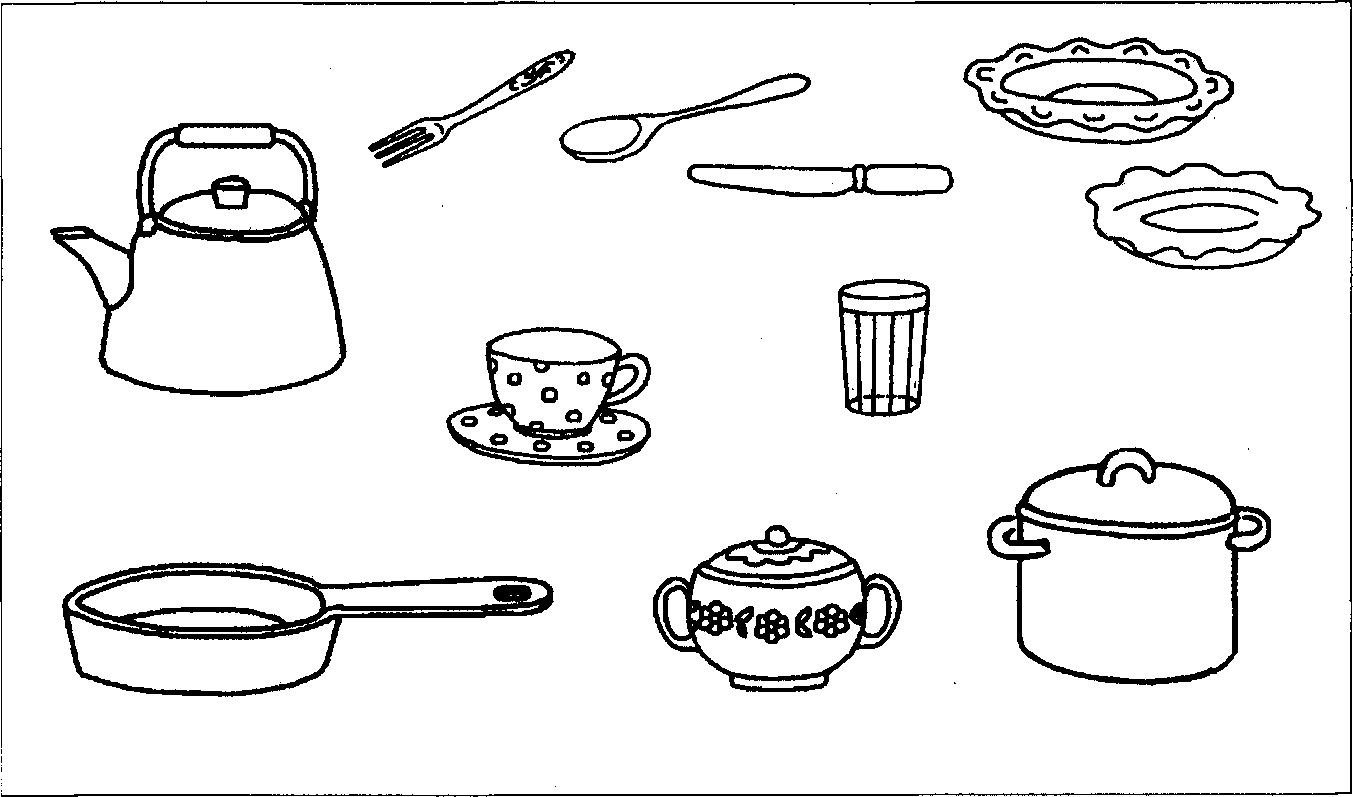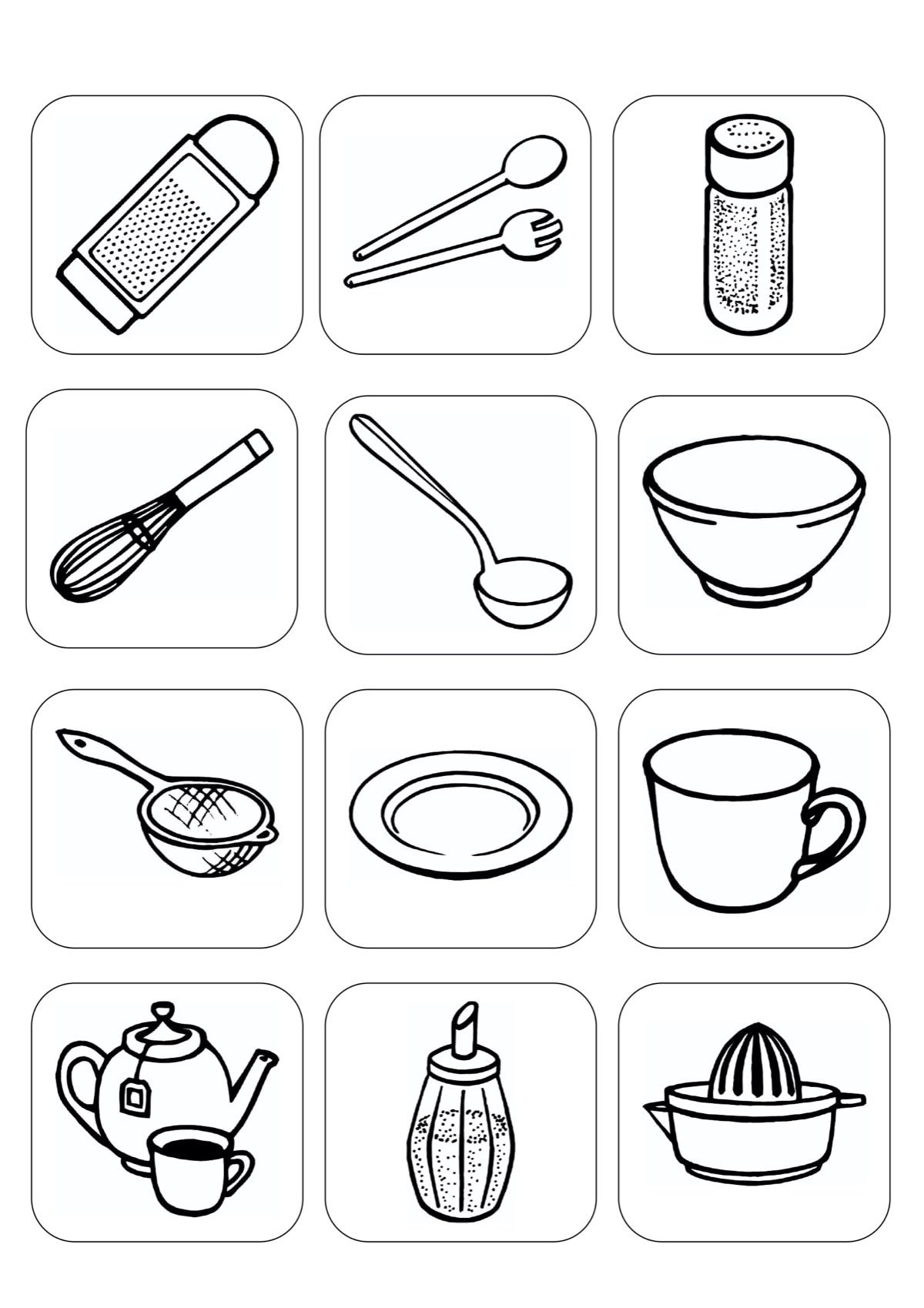 Раскраска Кухонные принадлежности