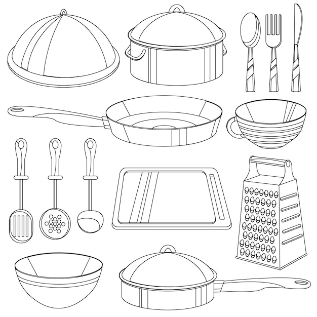 Раскраска кухонных принадлежностей - отличный способ весело провести время как детям, так и взрослым. В нашей подборке вы найдете разнообразные картинки с кастрюлями, чашками, ложками и другими предметами, которые придутся по вкусу каждому. Просто скачайте и распечатайте раскраски, чтобы окунуться в мир кулинарии прямо у себя дома.