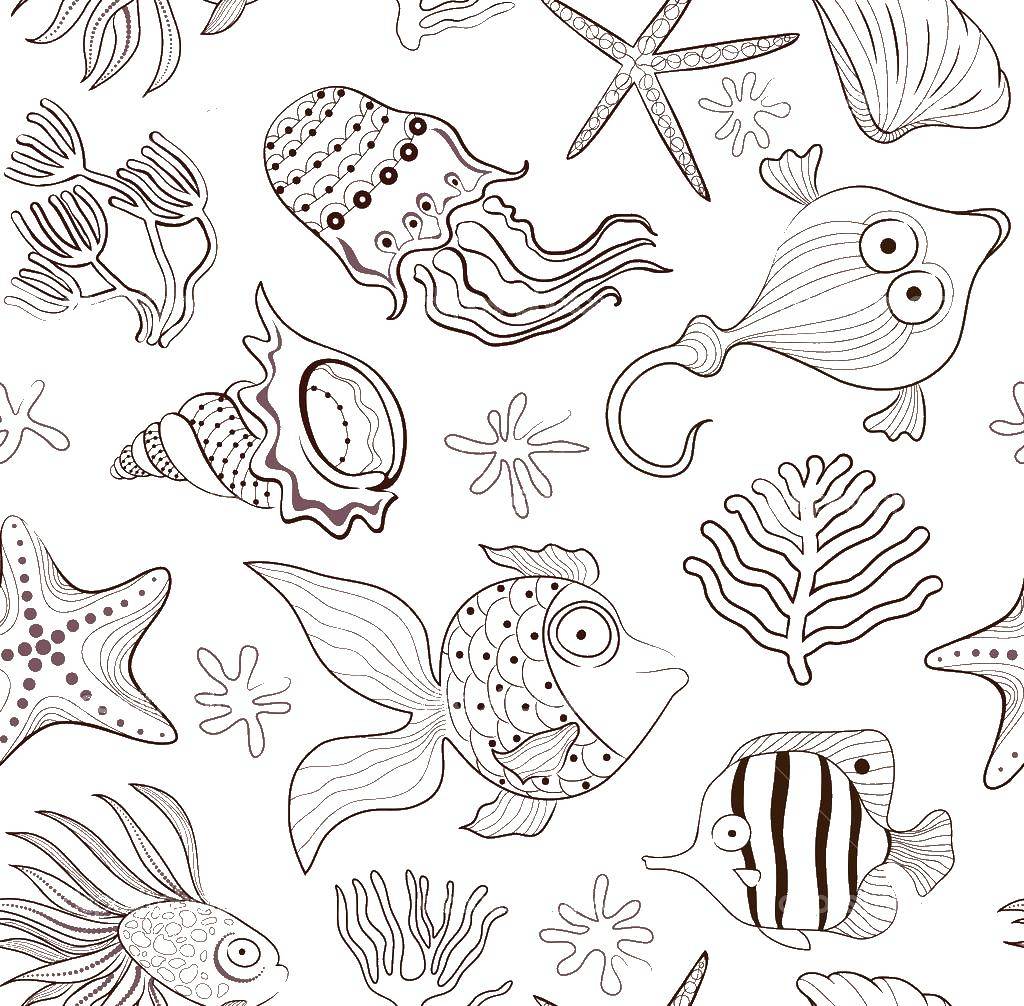 Раскраска Морские рыбы