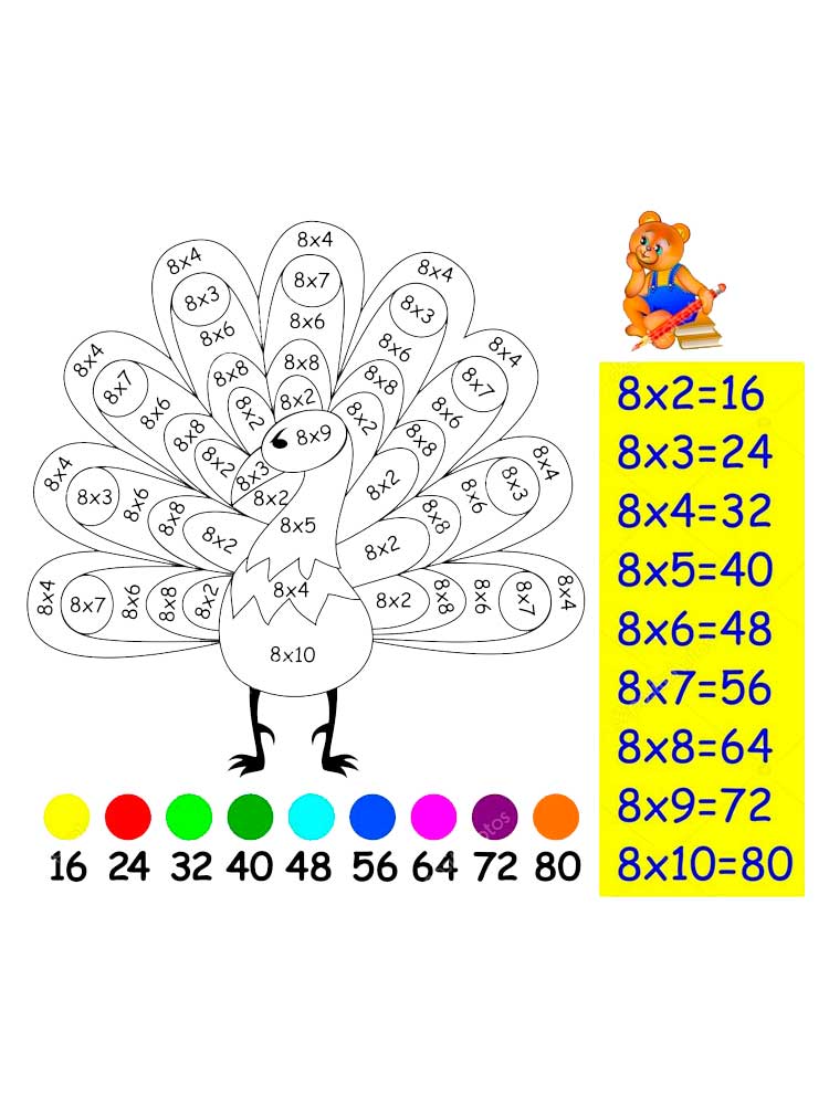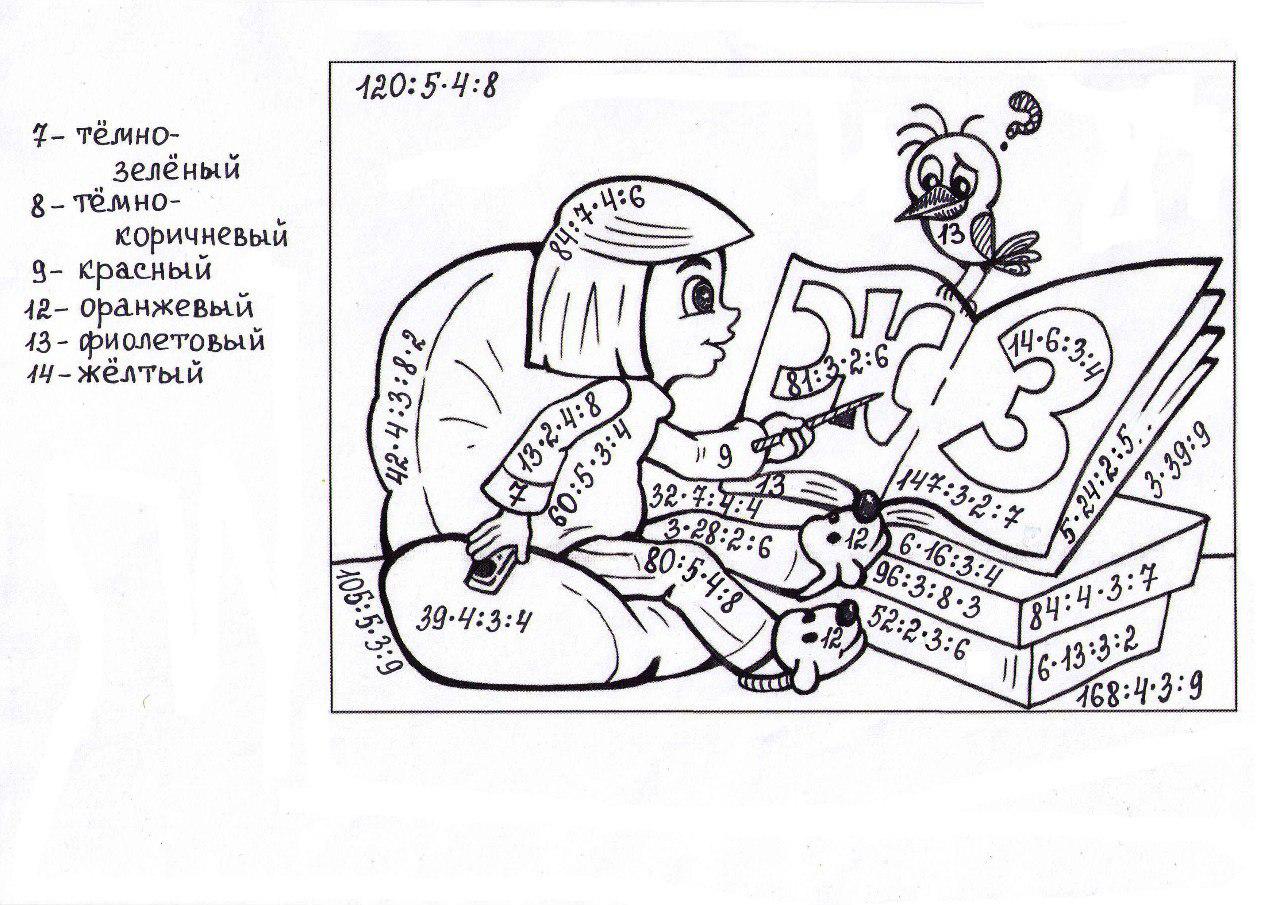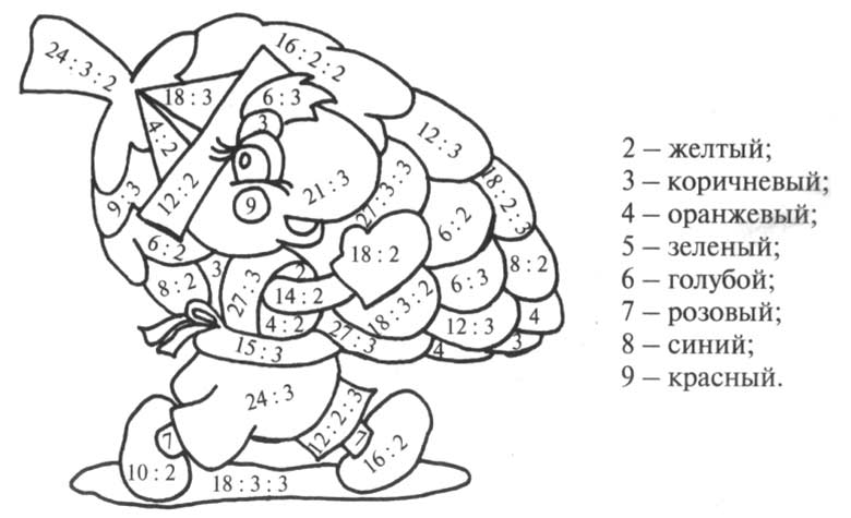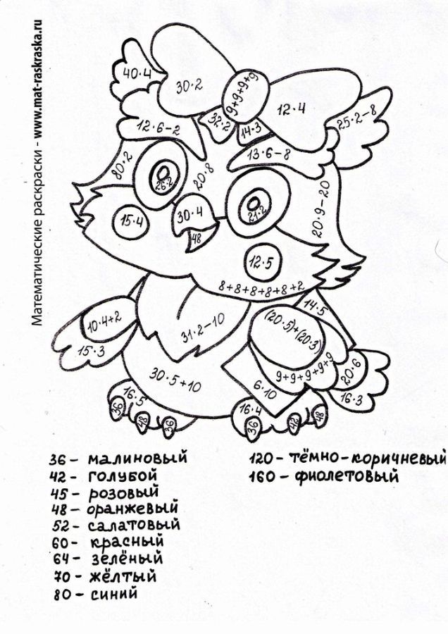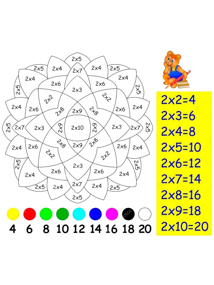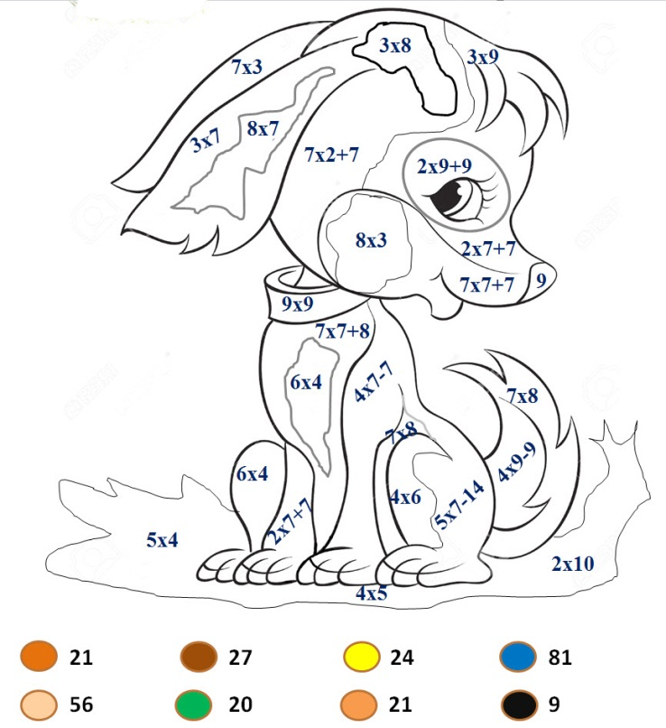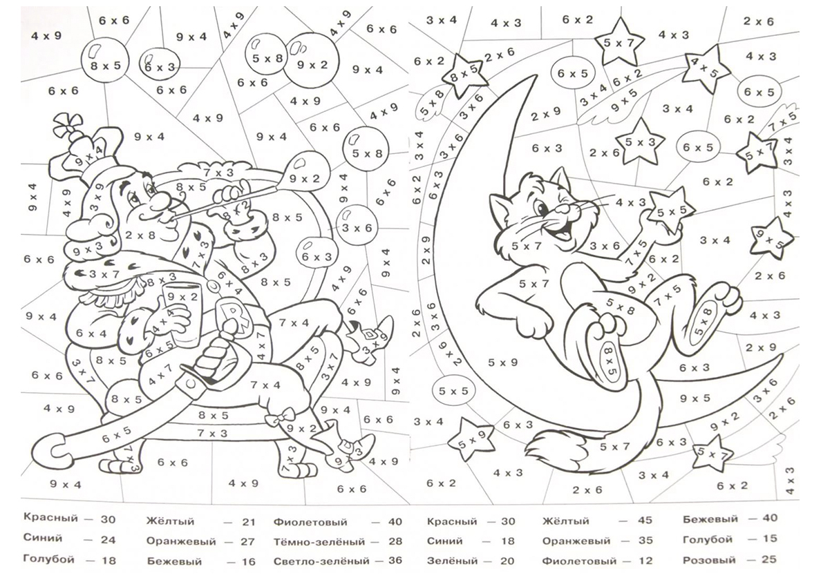 Раскраска С примерами на умножение