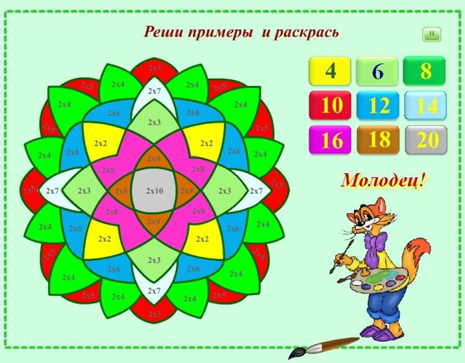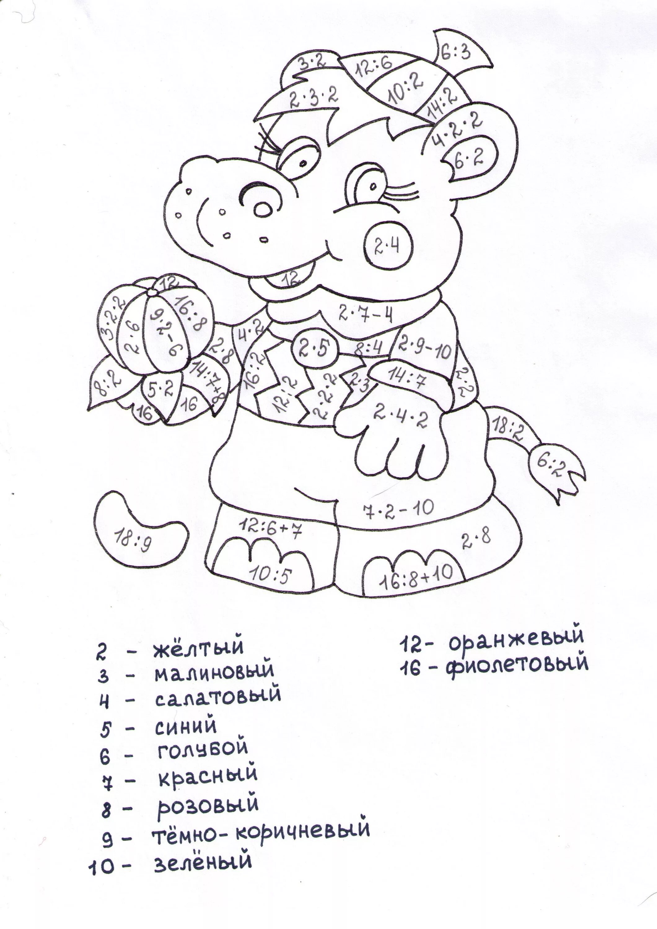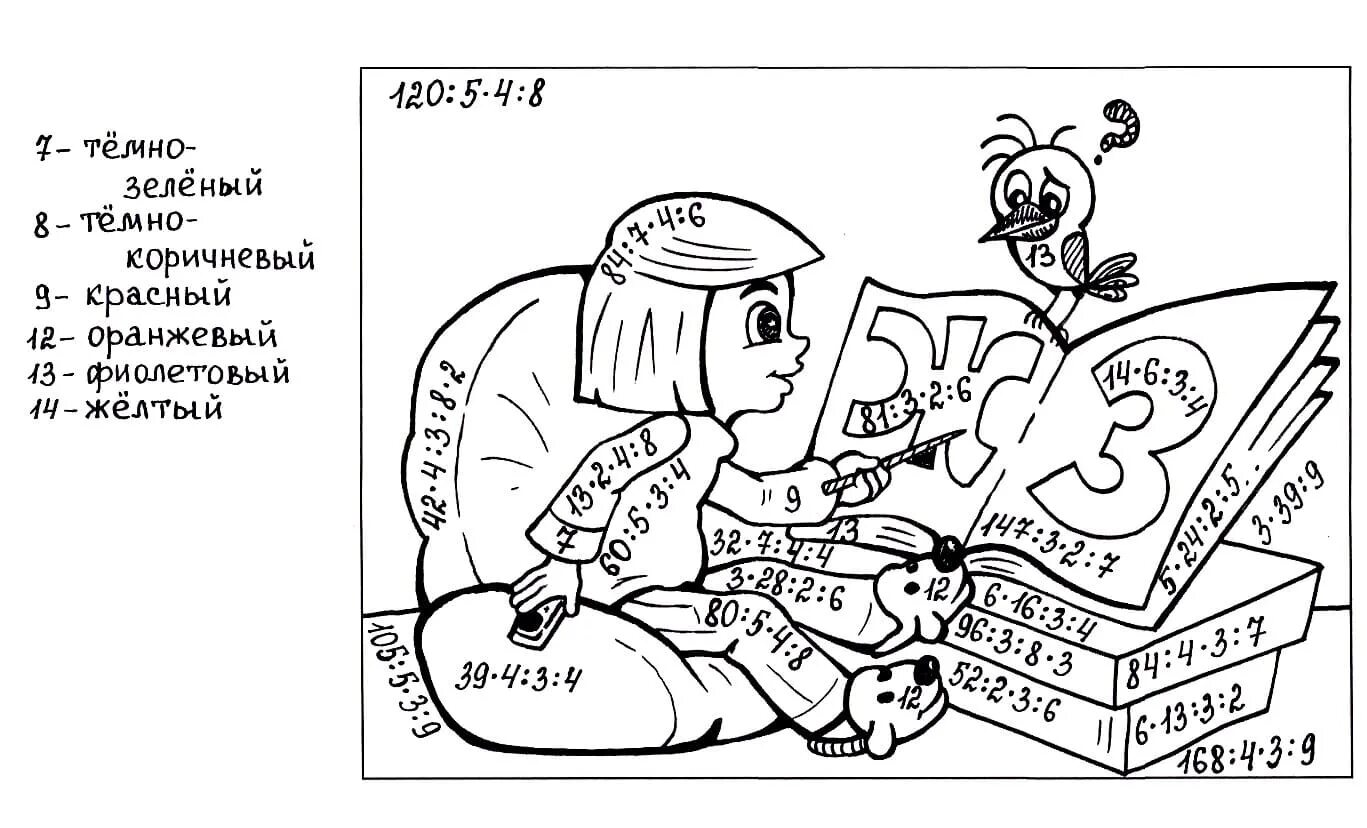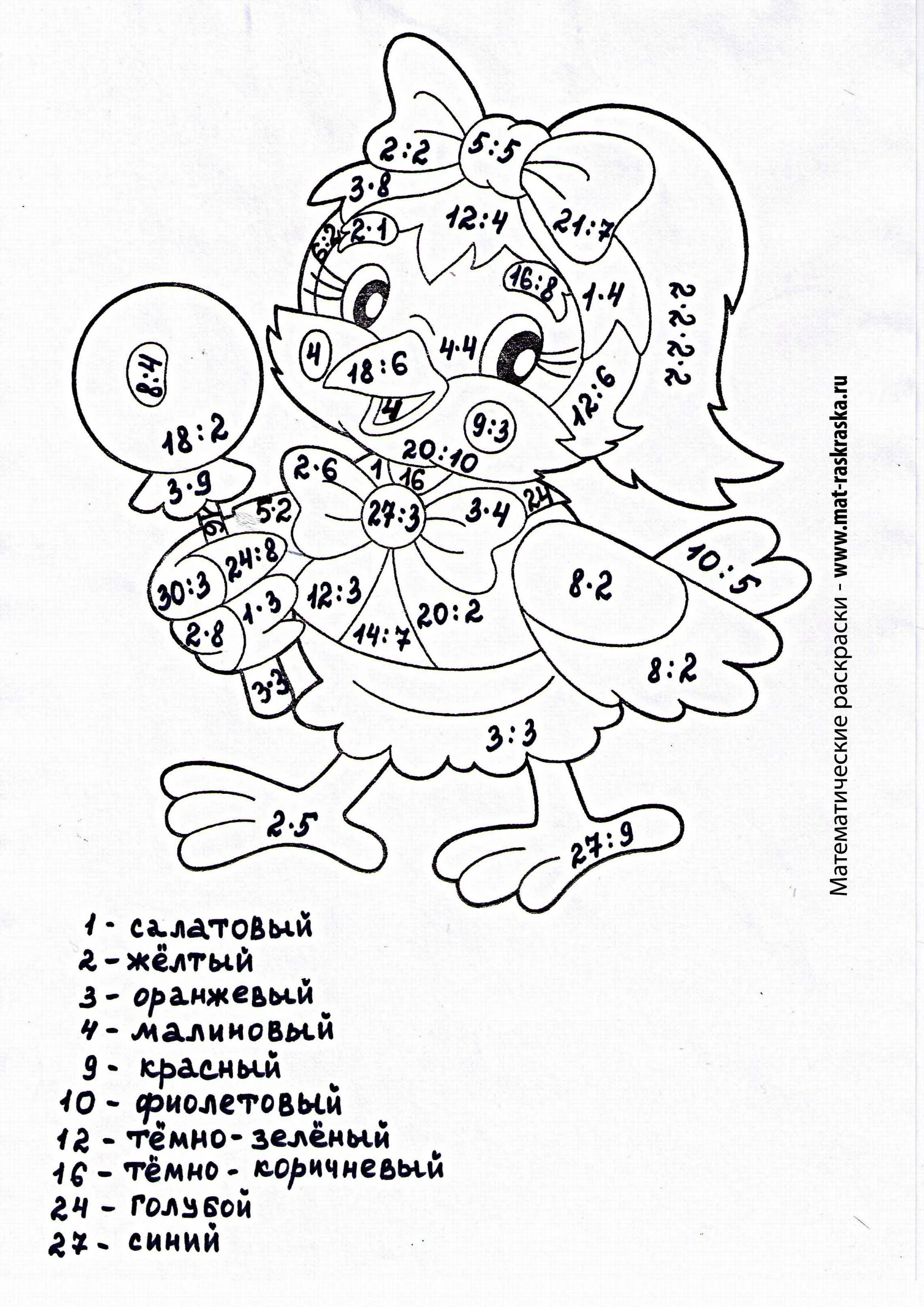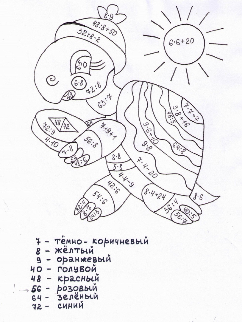Раскраска С примерами на умножение
