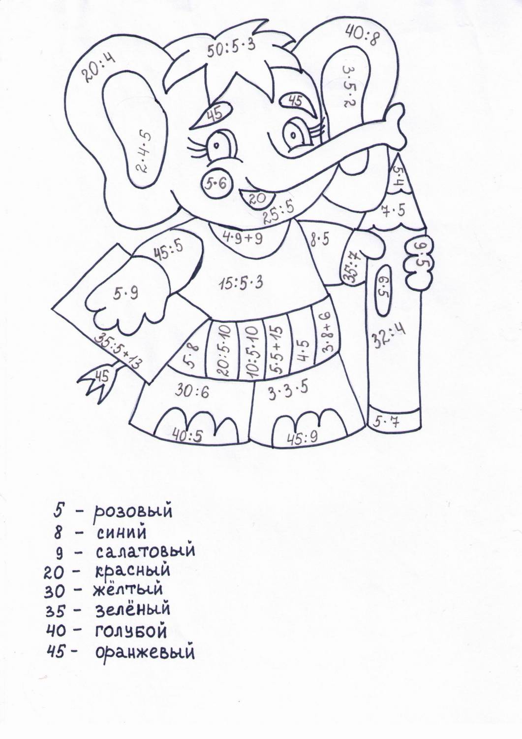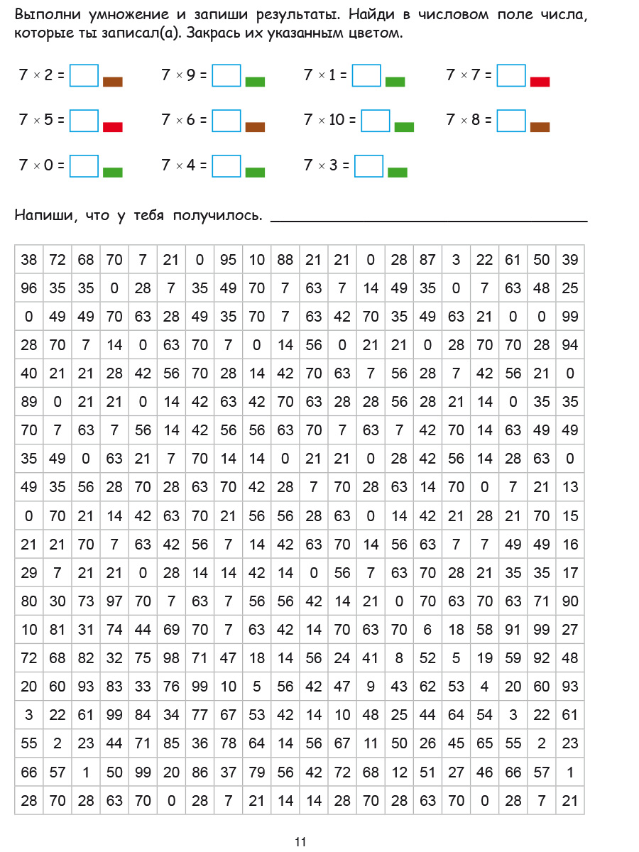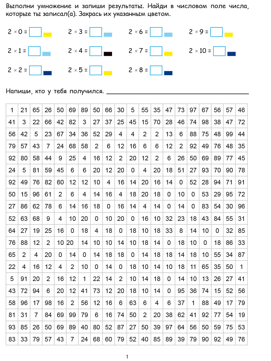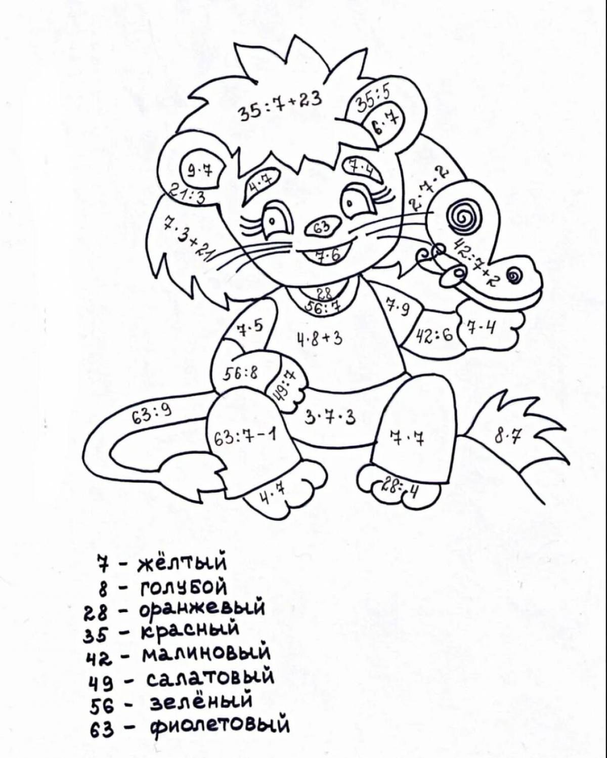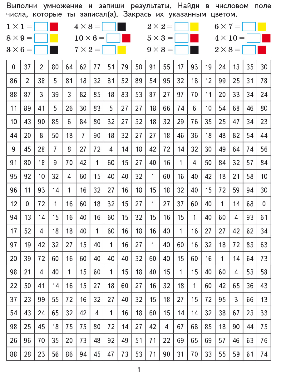 Раскраска С примерами на умножение