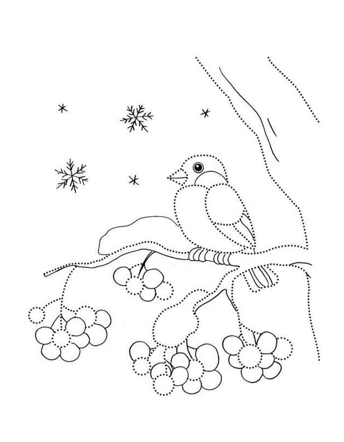Раскраска снегирь на ветке рябины