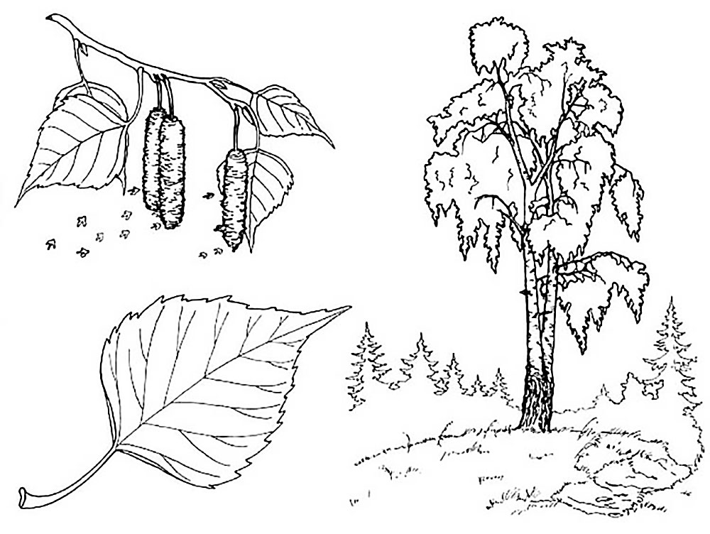 Раскраска Трафареты Березы